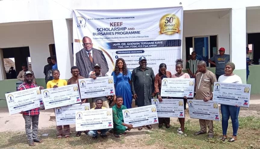 Founder, Kave Economic Empowerment Foundation (KEEF), Dr Godwin Kave, has awarded scholarships to 100 indigent students drawn from across the 23 Local Government Areas of Benue State.