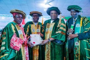 The Federal University of Kashere (FUK), Gombe State, has conferred an honorary Doctor of Science (D.Sc, Honoris Causa) on Senator Orji Uzor Kalu, in recognition of his remarkable contributions to national development, entrepreneurship, philanthropy, and unwavering commitment to Nigeria’s unity.