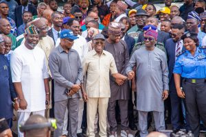 Governor Okpebholo was joined at the event by Edo State Deputy Governor, Hon Dennis Idahosa; Minister of Works, Dave Umahi; former governor of Edo State Comrade Adams Oshiomole; Secretary to State Government, Musa Ikhilor; Chief of Staff Gani Audu; top government functionaries, party chieftains, heads of security agencies in the State, among others.