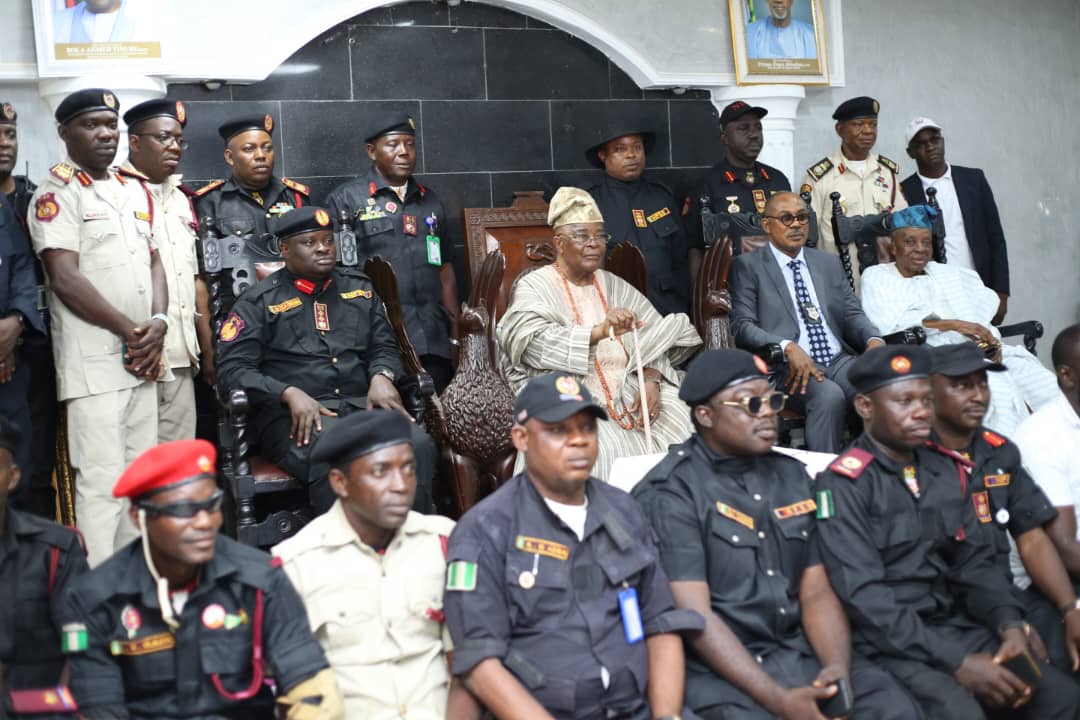 Earlier, the Commander General of NFSS, Dr Joshua Wole Osatimehin said he was in the palace with his team to brief the Traditional Ruler on the achievements of the Service since inception ten years ago