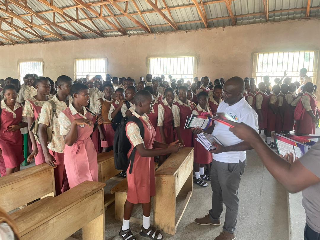 The organization, at the event, equiped the students with flyers and note books with covers bearing messages on the evils of trafficking and drug abuse noting that “This is so that anytime a child picks the book to use and opens it, he or she will read what is written in it about the dangers of human trafficking and drug abuse.”