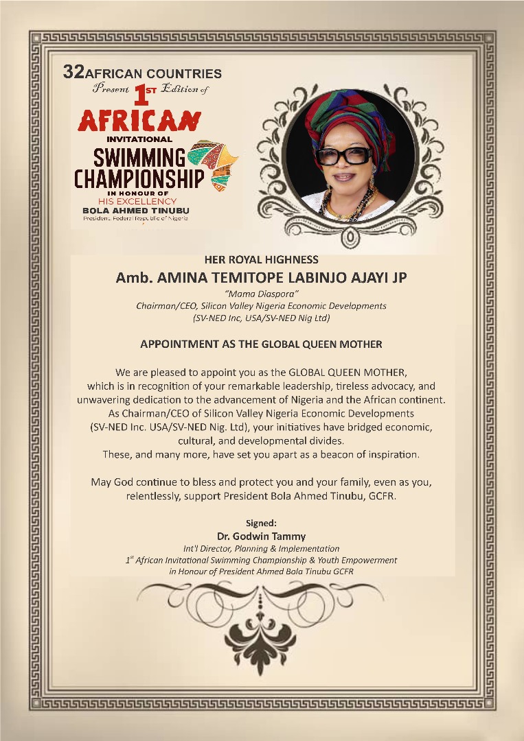 *Global Queen Mother of the 1st African Invitational Swimming Championship*