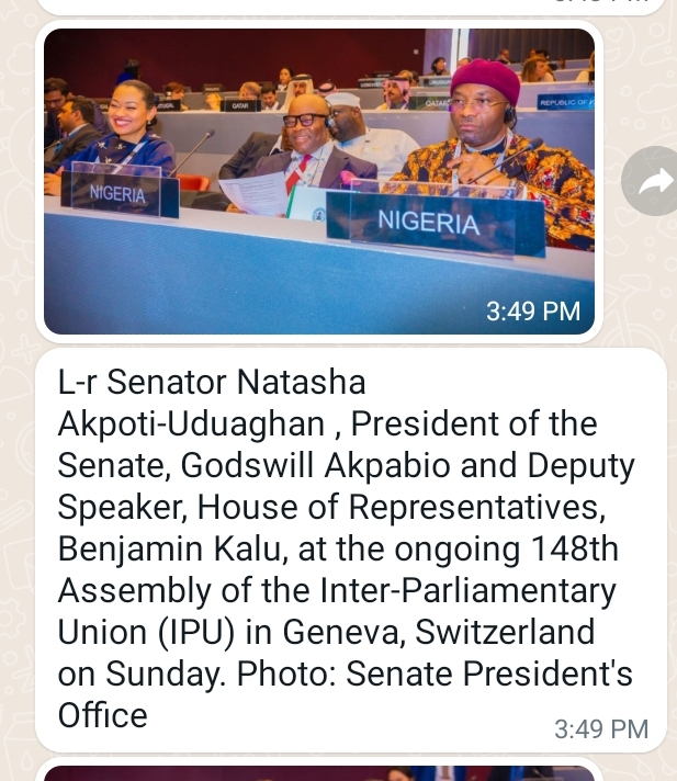 By Iyojo Ameh The President of the Senate, Godswill Akpabio, on Friday arrived in Geneva, Switzerland as head of Nigeria’s delegation to the 148th Assembly of...